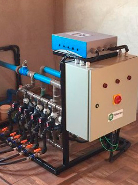 Equipamento de fertirrigacao e irrigação automatizada modelo: M300 com 6 entradas de solução nutritivas com disponibilidade de até 10 entradas com controle de pressão e vazão, irriga 16 setores de irrigação podendo ser ampliado até 64 setores.