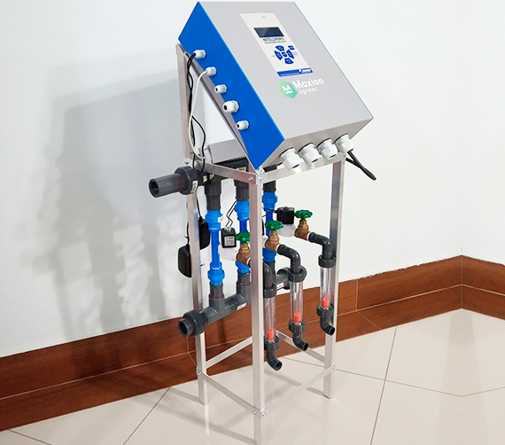 Controlador de fertirrigação e irrigação automatizada modelo M100 de 2 à 4 entradas de soluções nutritivas com controle automático de EC irriga até 16 setores.